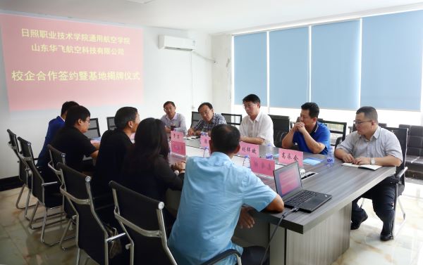 現場,劉祥斌與李建華代表雙方簽訂了校企合作框架協議;韓振與李建華為日照職業技術學院通用航空學院實習實訓基地揭牌。